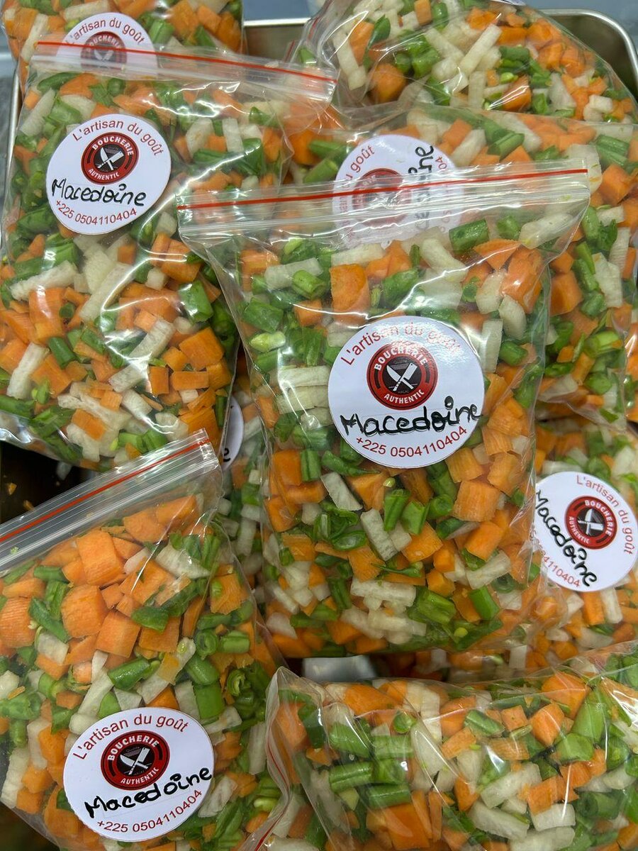 Découpe de légumes 100% naturel mélange de Macédoine carottes navets et haricots verts a 1.050frs le sachet de 450g