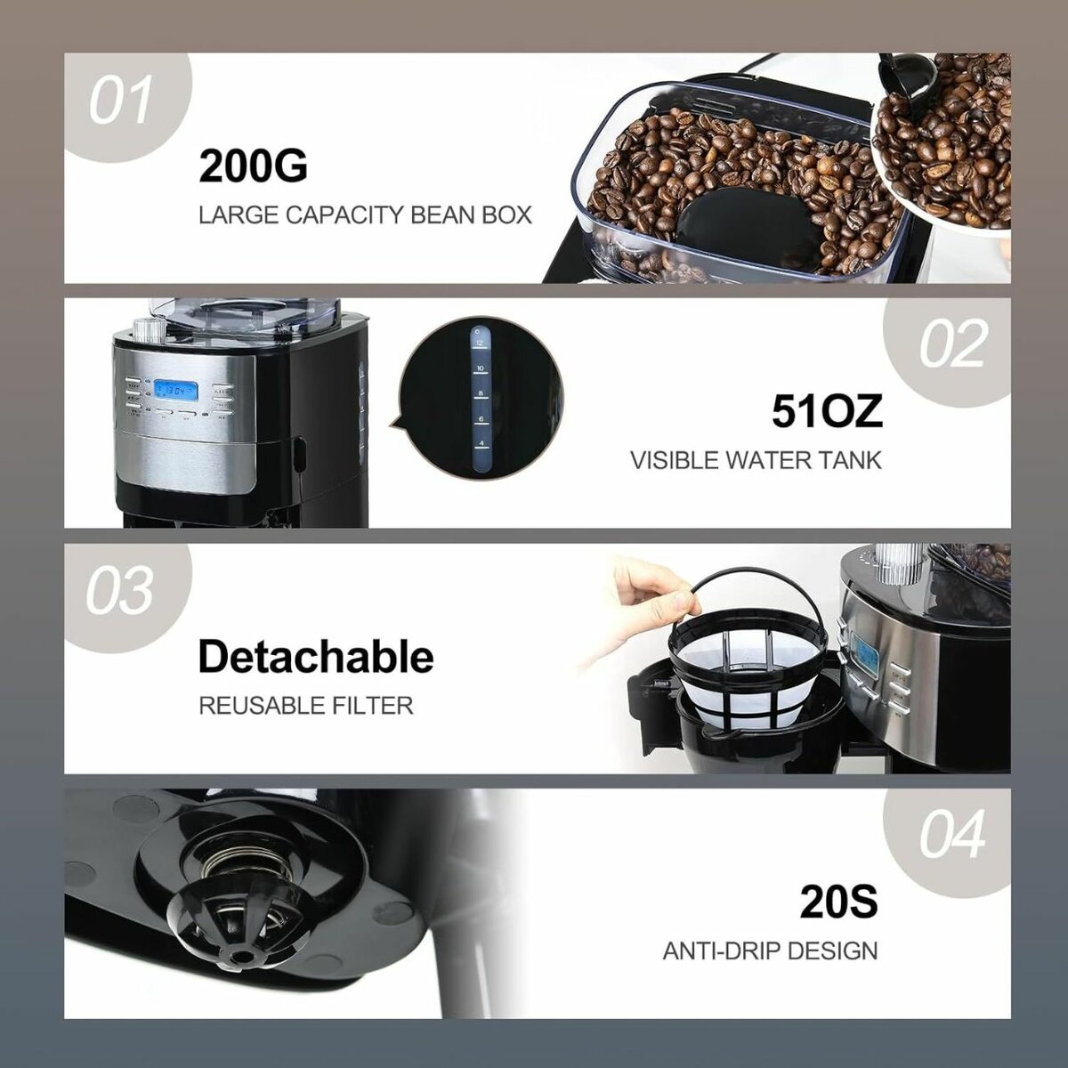 Dossier spécial : Maintien au chaud, minuterie, moulin à café intégré, filtre permanent