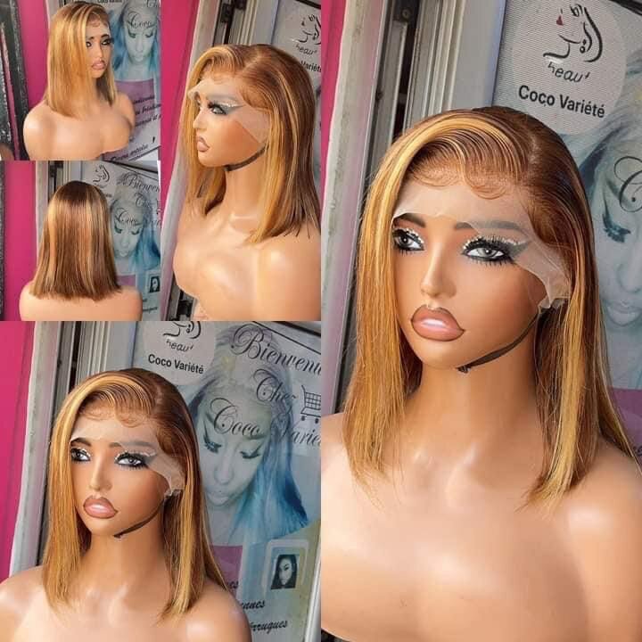 Perruque courte blonde péruvienne