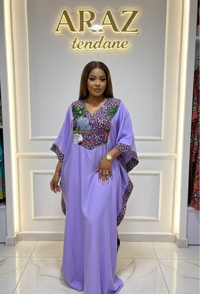 Élégante robe caftan ARAZ violet avec détails brodés. Parfaite pour des occasions spéciales ou une soirée chic. Confectionnée avec des matériaux de qualité pour un confort optimal.