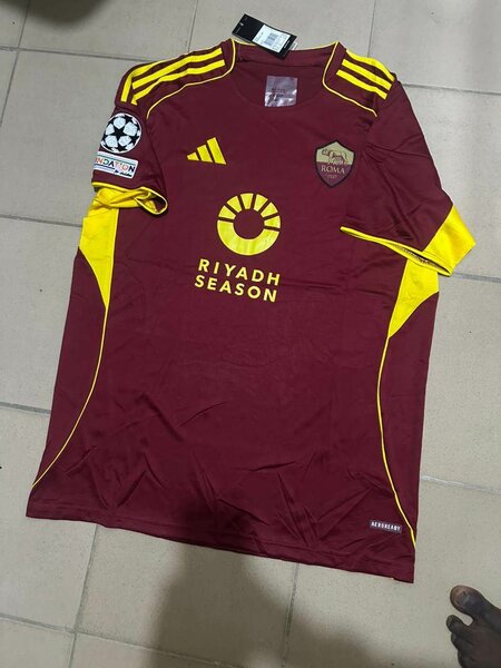 Maillot officiel AS Roma, design moderne, parfait pour supporters et joueurs. Fabriqué en tissu respirant et confortable. Idéal pour les matchs ou sorties sportives.