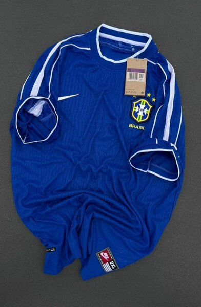 Maillot de football Brésil bleu Nike pour les passionnés de sport. Fabriqué avec des matériaux de haute qualité pour un confort optimal et une durabilité exceptionnelle. Idéal pour supporter votre équipe préférée lors des matchs ou pour un look sportif au quotidien. Disponible en taille XL.
