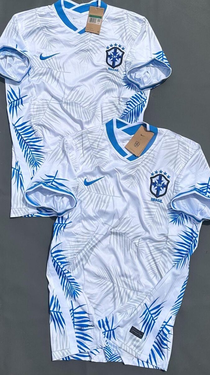 Maillot de football du Brésil avec motif tropical bleu, idéal pour les fans et les matchs. Confortable et stylé, parfait pour afficher votre passion du football.