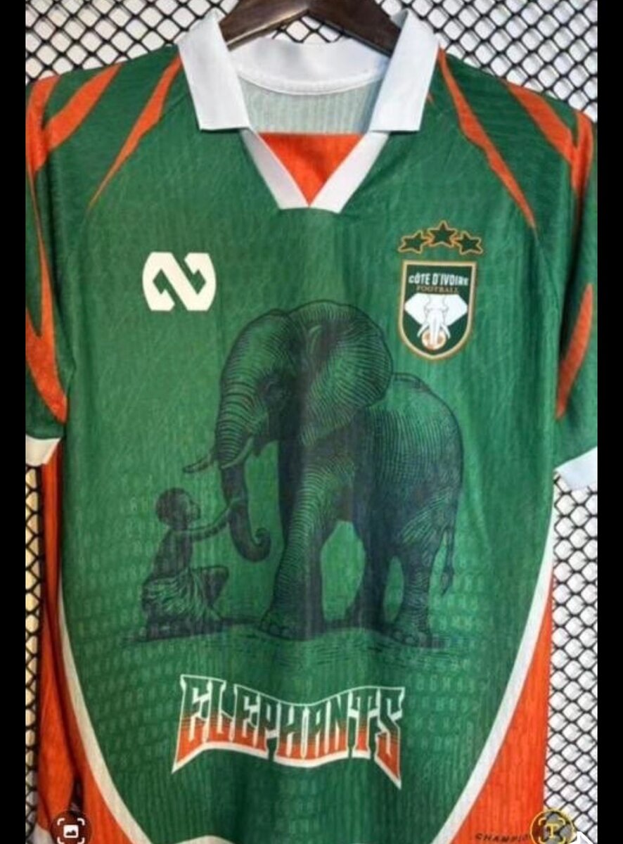 Magnifique maillot de football Côte d'Ivoire avec l'emblème des Éléphants. Tissu de qualité, idéal pour les fans et les collectionneurs. Montrez votre soutien avec style.