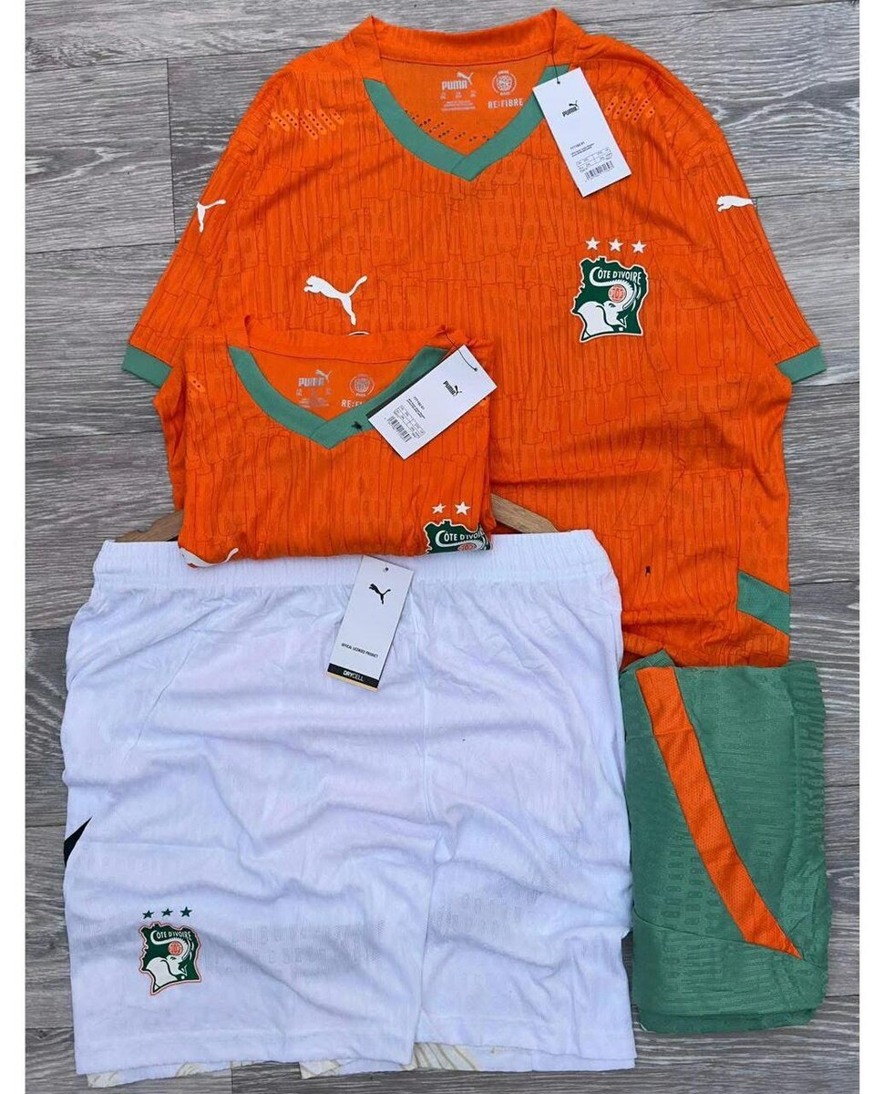 Découvrez notre ensemble de maillot officiel Côte d'Ivoire pour enfants, parfait pour les jeunes fans de football. Fabriqué par Puma, il offre confort et style avec son design vibrant et ses couleurs nationales. Idéal pour les matchs ou les loisirs!