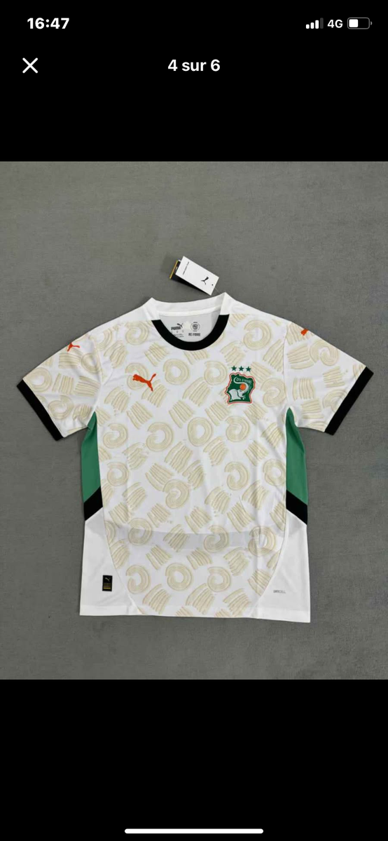 Découvrez ce maillot officiel de l'équipe de Côte d'Ivoire. Fabrication de haute qualité, idéal pour les fans de football. Parfait pour afficher votre soutien lors des matchs ou pour un look sportif au quotidien.