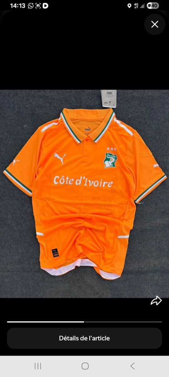 Ce maillot officiel de l'équipe de football de Côte d'Ivoire, arborant le logo emblématique et la couleur orange vibrante, est parfait pour tout supporter passionné. Fabriqué avec des matériaux de haute qualité pour un confort optimal lors des matchs ou à porter au quotidien. Idéal pour afficher votre soutien lors d'événements sportifs et rassemblements.