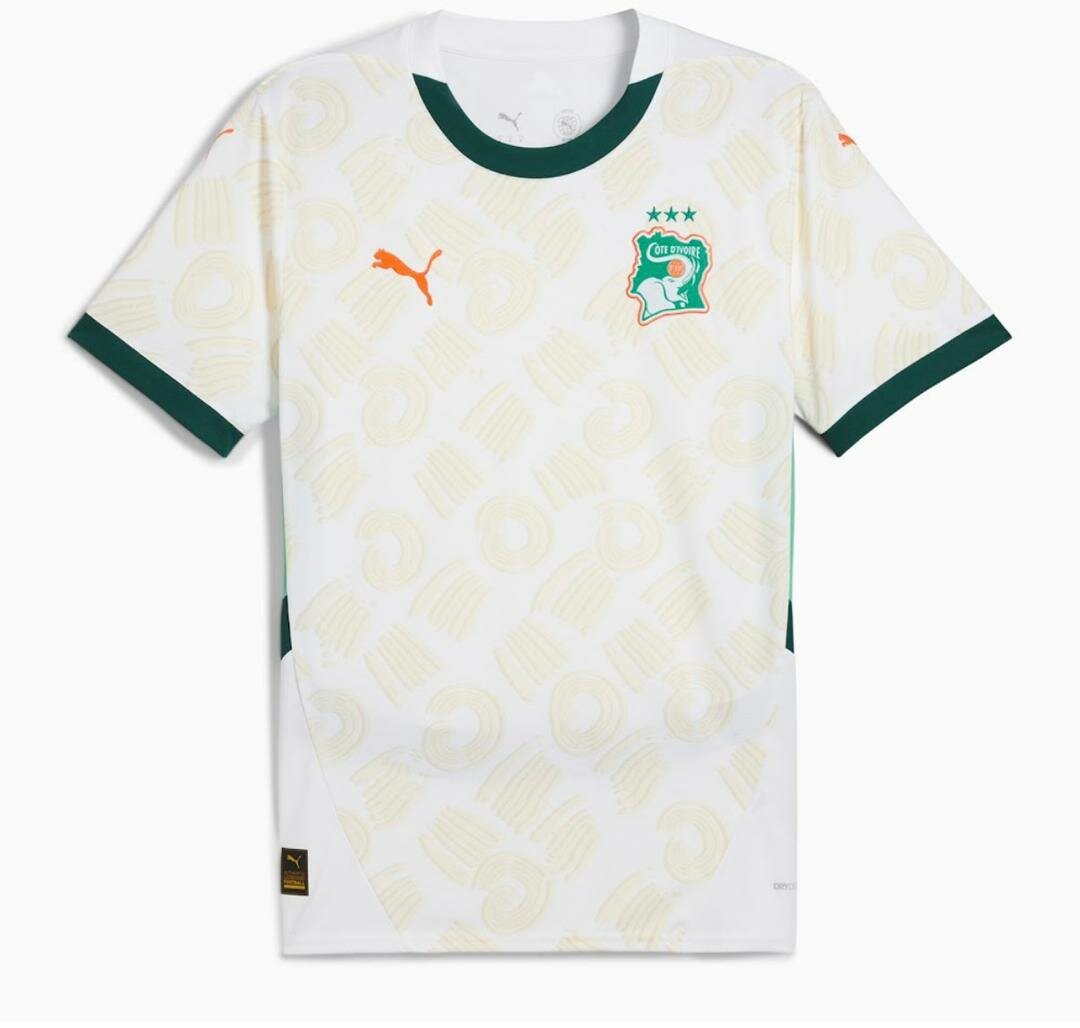 Découvrez le maillot officiel de l'équipe de football de la Côte d'Ivoire. Conçu par Puma, ce maillot léger et respirant est parfait pour les supporters et les athlètes. Avec ses couleurs emblématiques et son design élégant, il vous assure un style unique sur et en dehors du terrain. Parfait pour encourager votre équipe préférée ou pour le sport.