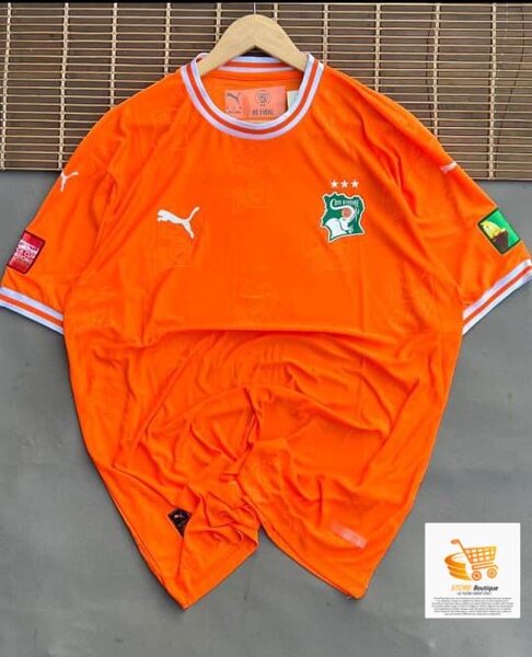 Plongez dans l'esprit du football avec ce maillot orange de la Côte d'Ivoire. Fabriqué en polyester léger pour un confort optimal, il arbore fièrement l'écusson officiel et des détails de qualité. Idéal pour les supporters ou pour afficher votre passion sur le terrain.