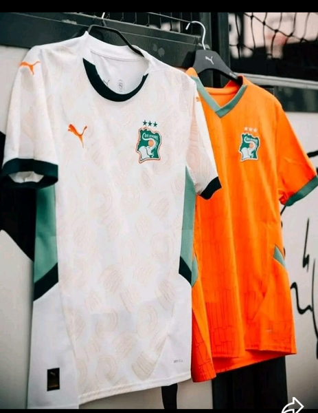 Découvrez le maillot officiel de la Côte d'Ivoire par Puma, idéal pour les fans de football. Disponible en orange éclatant et vert, il est parfait pour afficher fièrement vos couleurs lors des matchs.