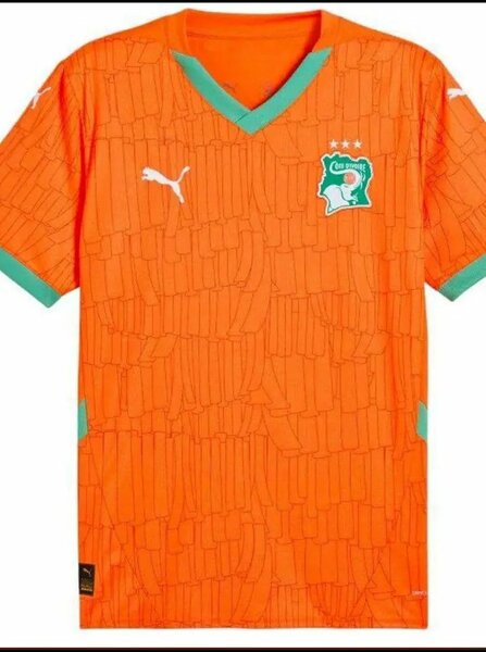 Maillot officiel de l'équipe de Côte d'Ivoire par Puma, idéal pour les fans de football. Design vibrant en orange avec détails turquoise. Confortable et respirant, parfait pour les matchs ou les sorties sportives. Soutenez votre équipe avec style!