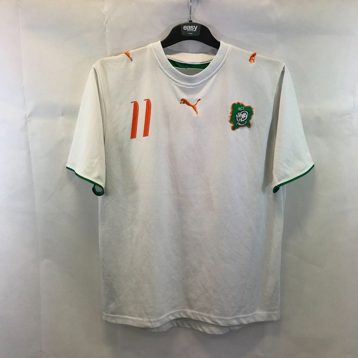 Supportez la Côte d'Ivoire avec ce maillot officiel Puma. Confortable et stylé, ce maillot est idéal pour les fans et sportifs. Arborez fièrement les couleurs de votre équipe préférée, parfait pour les matchs ou un usage quotidien.