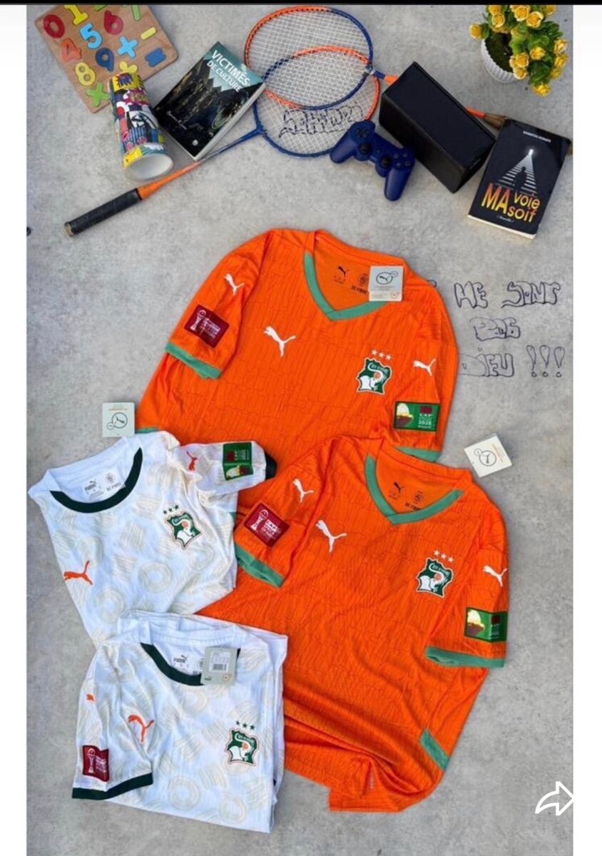 Maillot de football officiel de l'équipe nationale de Côte d'Ivoire. Disponible en orange et blanc, idéal pour les supporteurs passionnés. Tissu respirant et confortable.