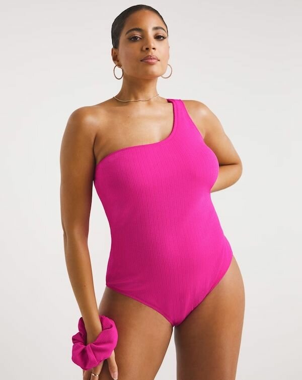 Explorez l'élégance estivale avec ce maillot de bain asymétrique en rose vif. Conçu pour capturer l'attention, il offre un confort optimal et un style unique. Idéal pour des journées ensoleillées à la plage ou à la piscine. Fabriqué avec des matériaux de haute qualité pour une durabilité accrue. Complet avec un chouchou assorti, parfait pour un look coordonné et chic.