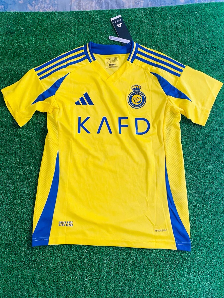 Maillot de football officiel Al Nassr, idéal pour les fans et les amateurs de sport. Conçu en tissu respirant pour un confort optimal lors des entraînements ou les matchs. Portez-le fièrement sur le terrain ou dans les tribunes pour soutenir votre équipe favorite.