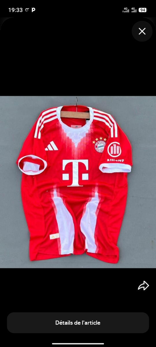 Maillot de football officiel du Bayern Munich, parfait pour les fans et les joueurs. Confortable, léger et respirant, idéal pour le sport ou le quotidien. Arborez fièrement vos couleurs !