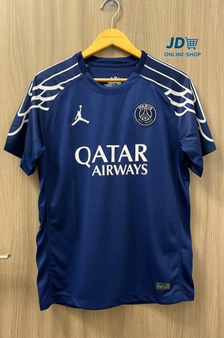 Découvrez le maillot de foot bleu du PSG, parfait pour tous les fans. Confort et style avec logo Qatar Airways. Idéal pour matchs et supporteurs.