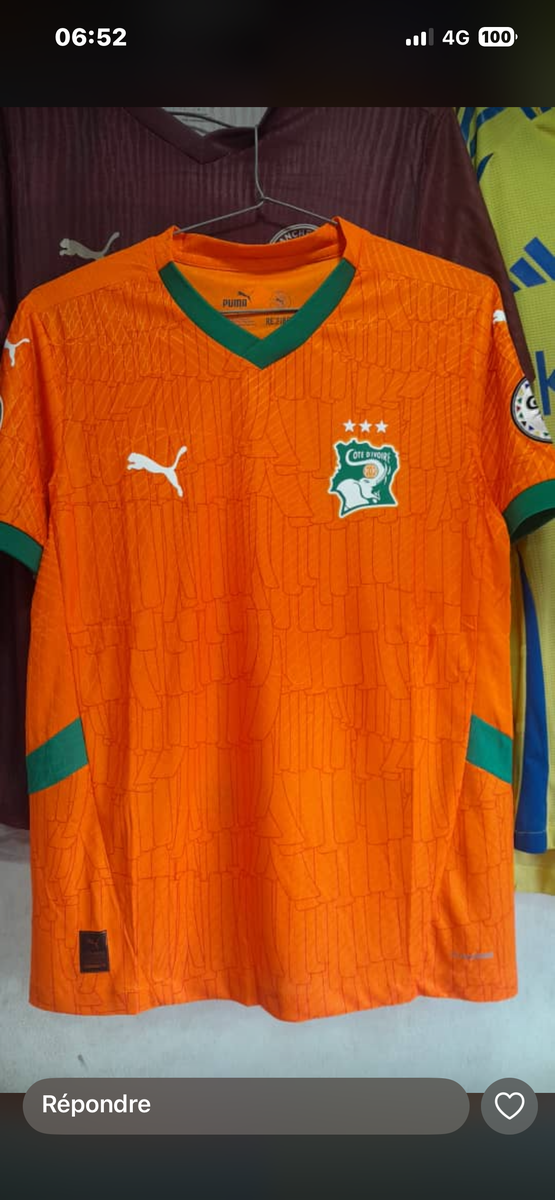 Maillot de football officiel de la Côte d'Ivoire, idéal pour les fans et les collectionneurs. Tissu léger et respirant, parfait pour le sport et le soutien de votre équipe favorite lors des matchs.