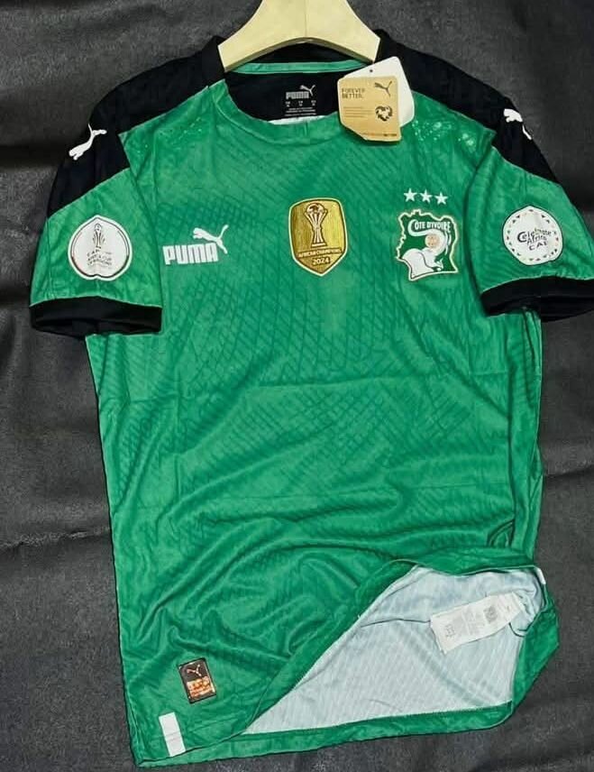 Maillot de football officiel Côte d'Ivoire, design Puma. Idéal pour les supporters passionnés. Confortable et respirant, parfait pour les matchs ou la vie quotidienne. Soyez fier de soutenir votre équipe!