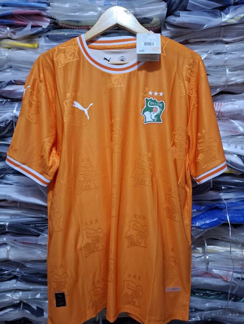 Maillot officiel Côte d'Ivoire, confortable, respirant, idéal pour les supporters. Logo Puma et emblème ivoirien. Parfait pour le football ou le streetwear.