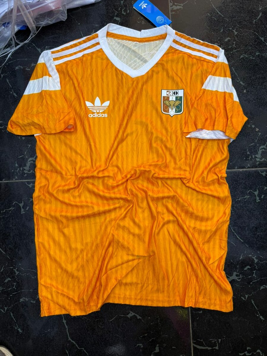 Maillot de foot rétro Adidas, idéal pour les fans de football et les collectionneurs. Fabriqué en matériau léger et respirant, parfait pour le sport ou le quotidien. Design vintage avec le blason de l'équipe, apportant une touche d'authenticité à votre garde-robe.