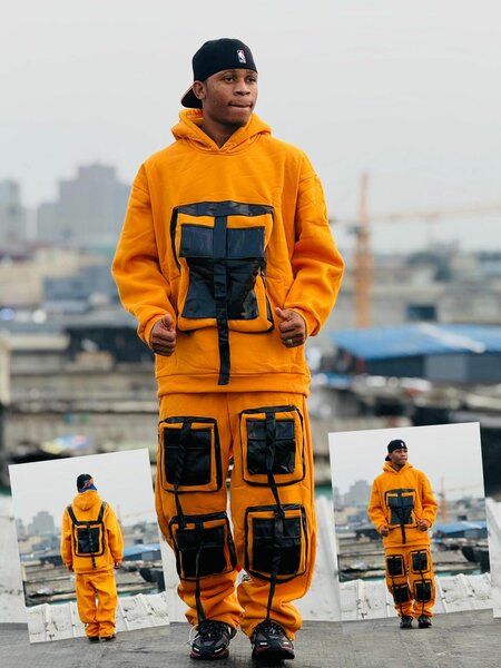 Combinaison cargo à capuche pour hommes, survêtement décontracté avec poches