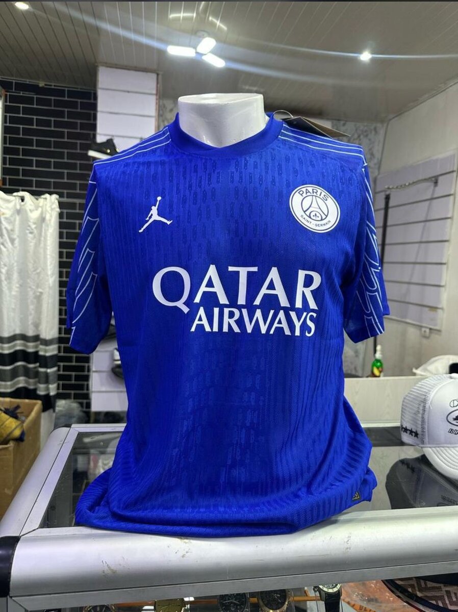 Maillot de football PSG en bleu vif, parfait pour les fans de sport. Confortable et respirant, idéal pour le jeu ou le quotidien. Montrez votre soutien.