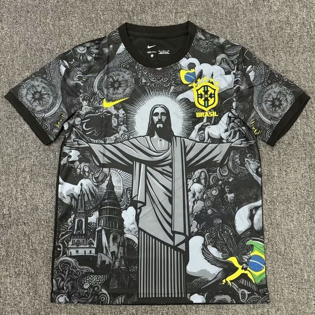 Exprimez votre passion avec ce maillot unique du Brésil, orné du célèbre Christ Rédempteur et du design graphique accrocheur. Idéal pour les fans de football, son tissu de haute qualité garantit confort et durabilité, parfait pour le jeu ou les loisirs. Rejoignez la légende et portez les couleurs iconiques.