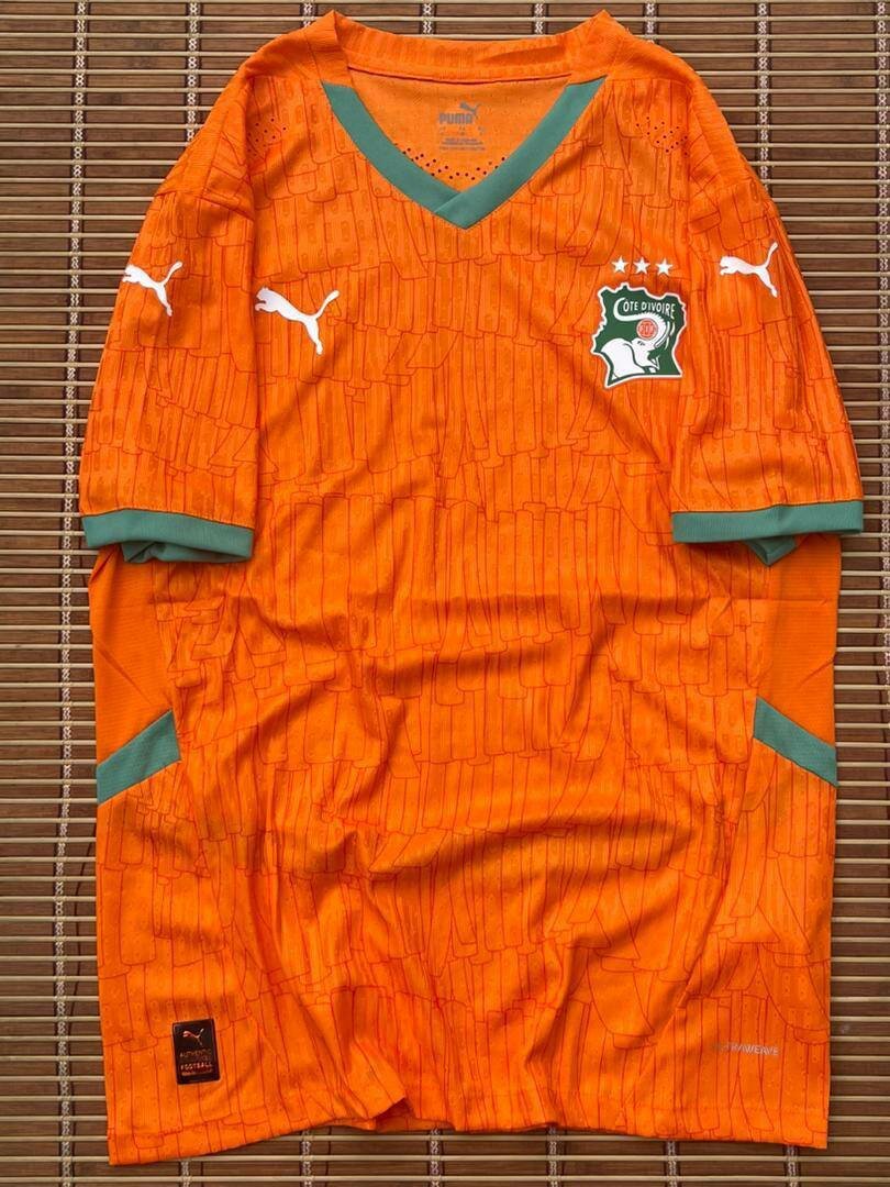Supportez l'équipe nationale de Côte d'Ivoire avec ce maillot officiel. Disponible en orange et blanc, ce maillot offre confort et style avec ses matériaux respirants. Parfait pour les fans et les collections de maillots, il s'adapte bien aux événements sportifs ou à un usage quotidien.
