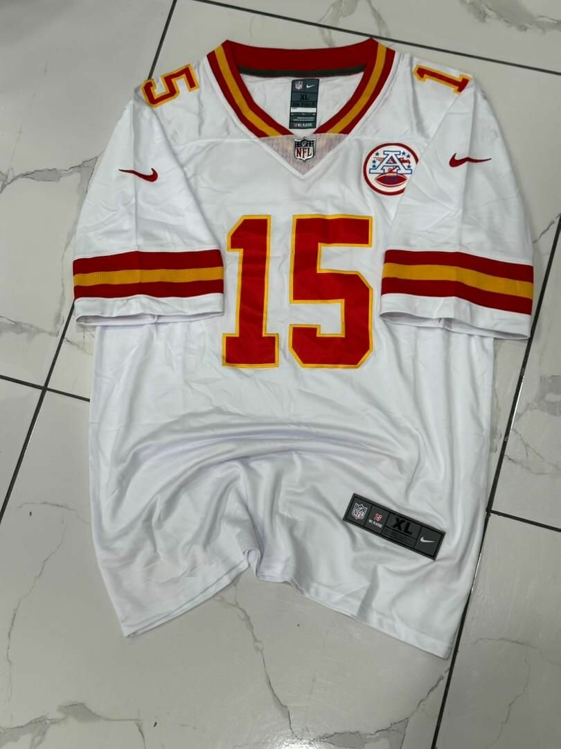 Maillot de football américain blanc avec numéro 15. Idéal pour les fans de sports, apporte confort et style pendant les matchs ou la détente à la maison. Fabriqué dans un matériau respirant pour un confort optimal.