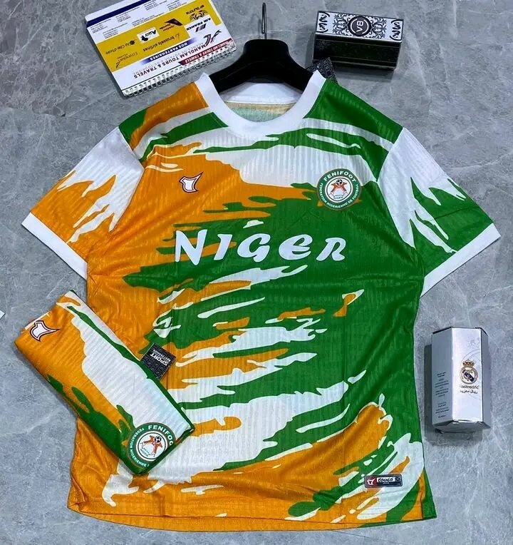 Adoptez le look sportif avec ce maillot de football officiel de l'équipe du Niger. Parfait pour les matchs et les entraînements, il offre confort et style grâce à ses couleurs vives et son design moderne. Montrez votre soutien et vivez votre passion pour le foot!