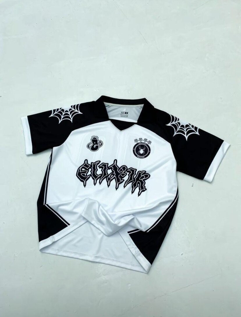 Découvrez ce maillot de football stylé noir et blanc, parfait pour les amateurs de sport et de mode. Confectionné dans un tissu respirant pour un confort optimal. Idéal pour des performances sur le terrain ou pour un look décontracté et branché en dehors du terrain.