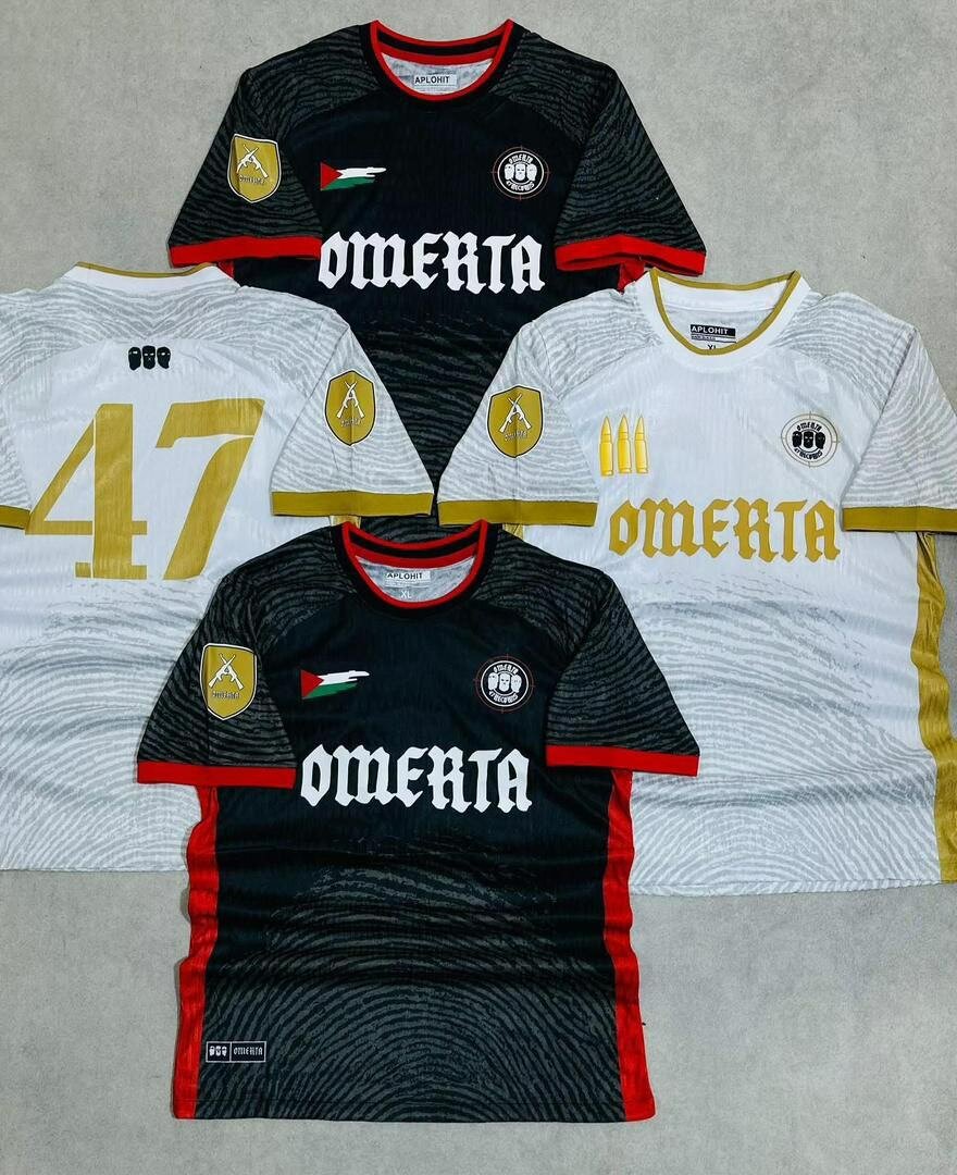 Découvrez le maillot de football Omerta, parfait pour les passionnés de sport et de style. Fabriqué avec des matériaux de haute qualité, il garantit confort et performance sur le terrain. Idéal pour les matchs entre amis ou les entraînements. Disponible en noir et blanc avec des accents dorés pour un look élégant et sportif.