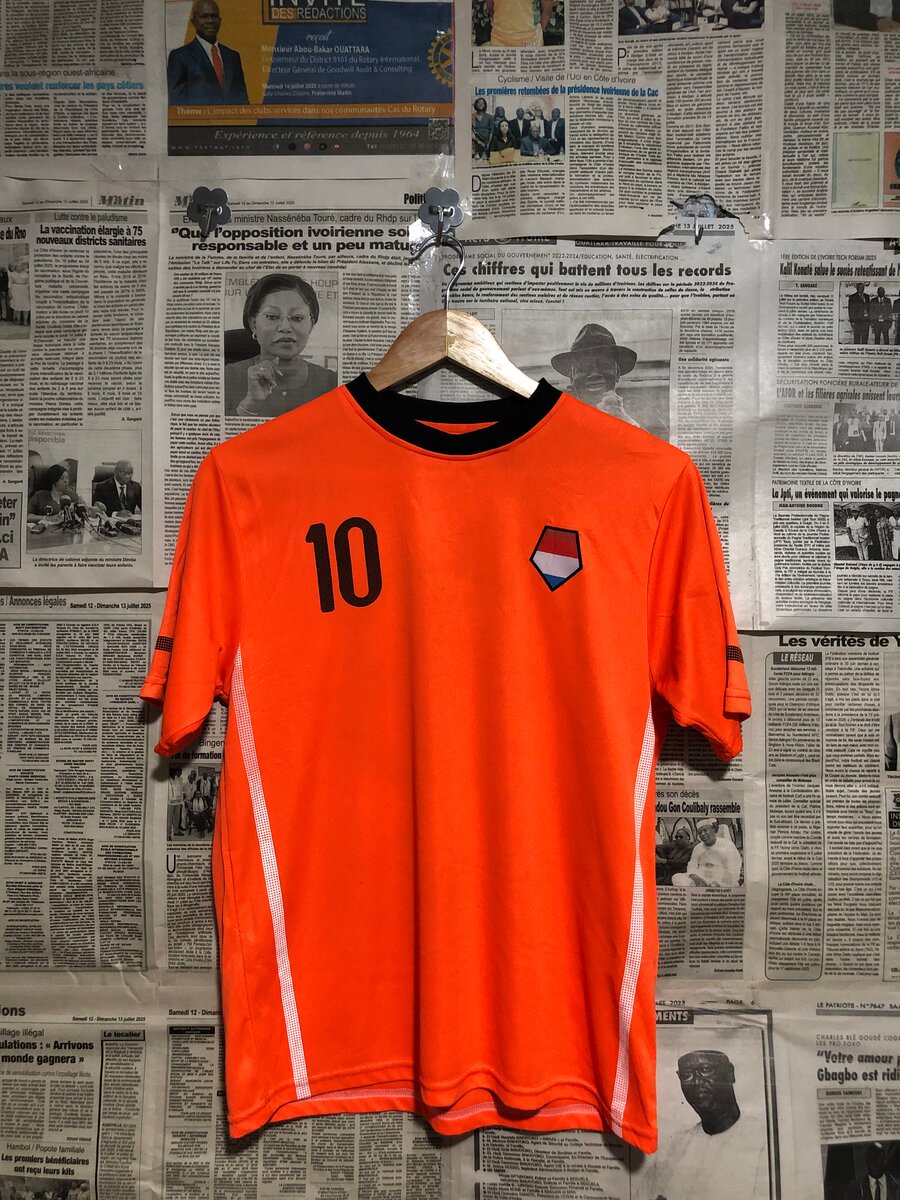 Ce maillot de football orange vif, arborant le numéro 10, est parfait pour les amateurs de sport. Conçu pour le confort et le style, il est idéal pour les matchs et les entraînements. Avec une coupe moderne et des bandes contrastantes, il offre une performance optimale sur le terrain tout en affichant votre passion pour le jeu. Idéal pour les joueurs ambitieux et les fans de football.