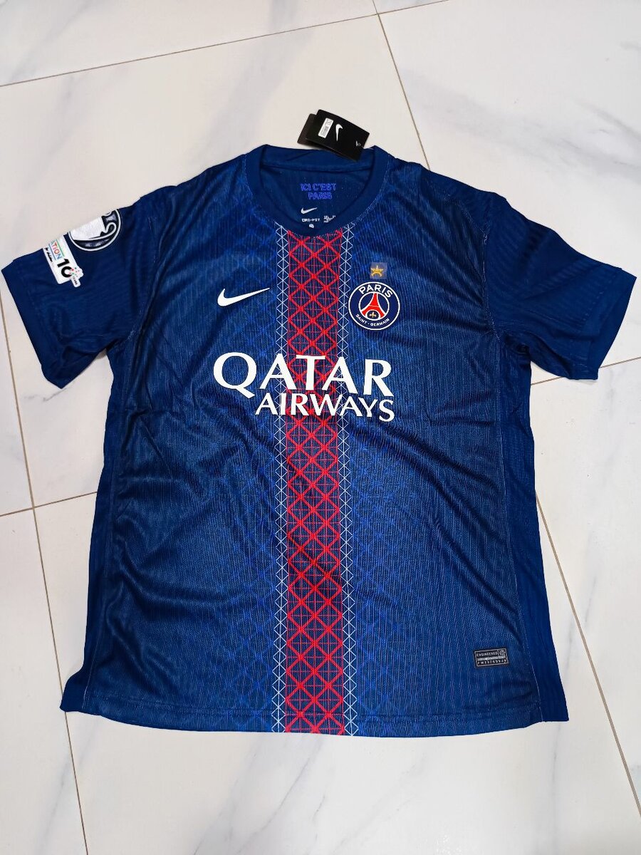 Maillot officiel Paris Saint-Germain aux couleurs emblématiques. Confortable et respirant, idéal pour les supporters et les joueurs. Parfait pour montrer votre passion sur le terrain ou dans les tribunes.