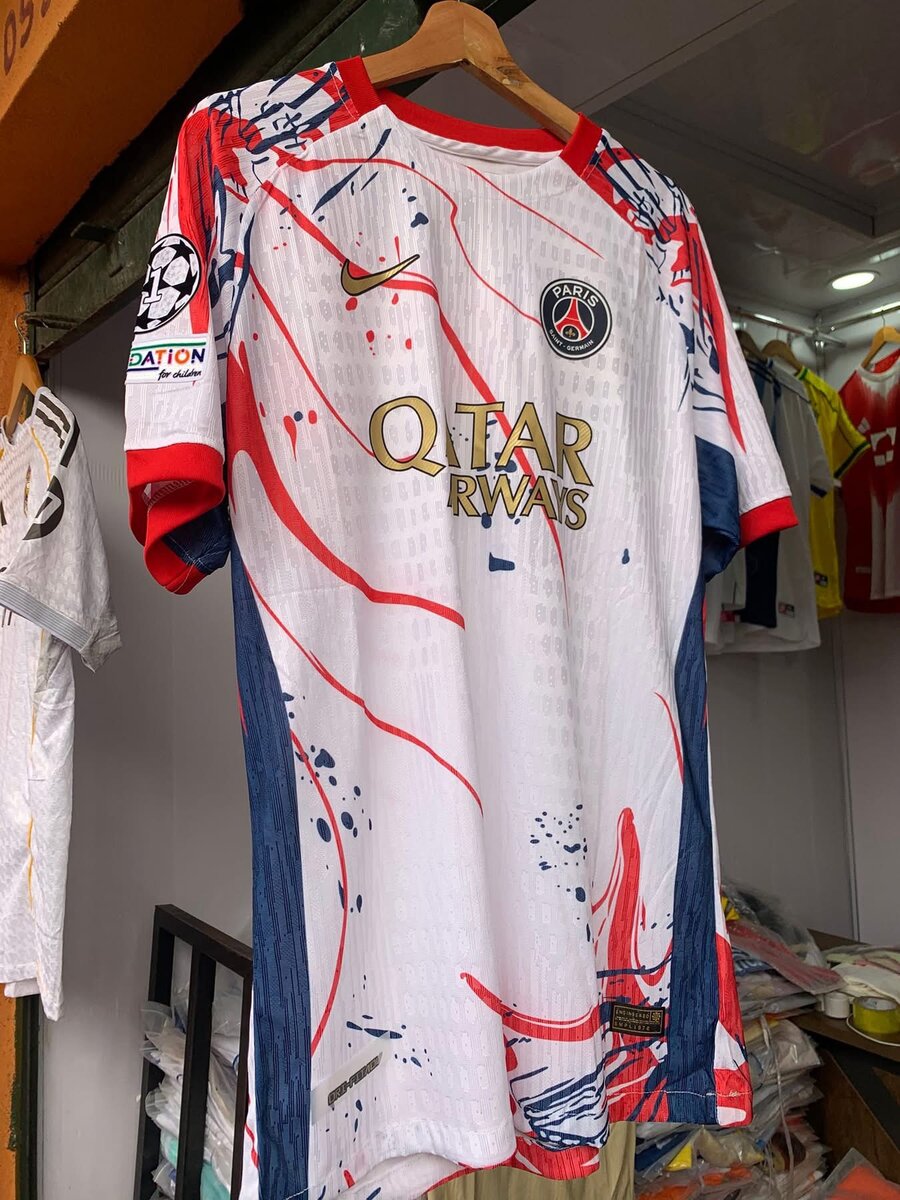 Découvrez ce maillot de football PSG, parfait pour les fans passionnés. Son design vibrant et ses couleurs éclatantes en font un choix idéal pour soutenir votre équipe préférée. Confortable et stylé, il convient à toutes les occasions sportives ou décontractées.