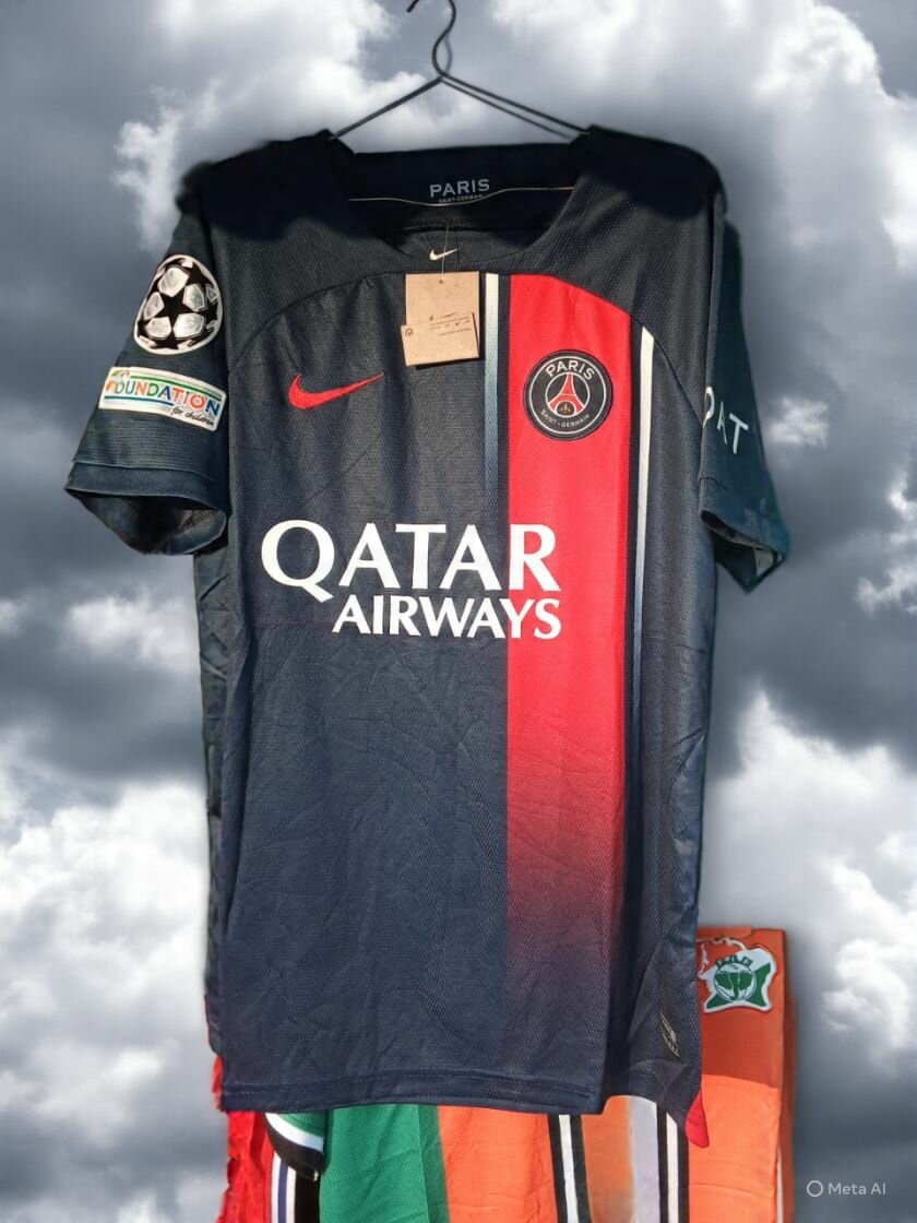 Maillot de football officiel PSG pour les fans loyaux. Fabriqué avec des matériaux de haute qualité pour un confort optimal lors des matchs ou au quotidien. Idéal pour afficher votre soutien à votre équipe favorite.