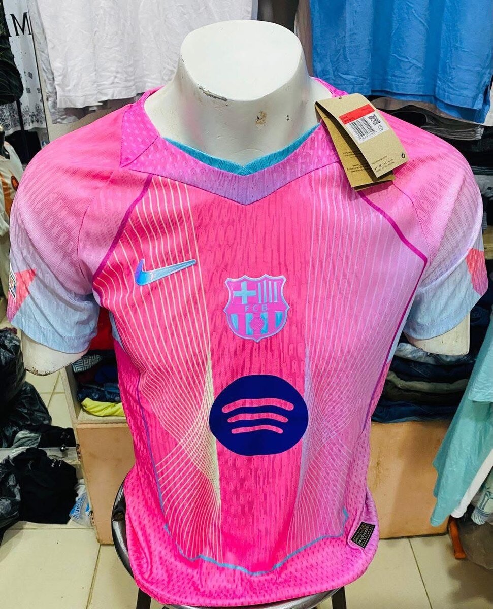 Maillot de football rose aux couleurs vives, idéal pour les fans et les sportifs. Conçu avec des matériaux respirants pour le confort durant les matchs et les entraînements. Affichez vos couleurs avec style !