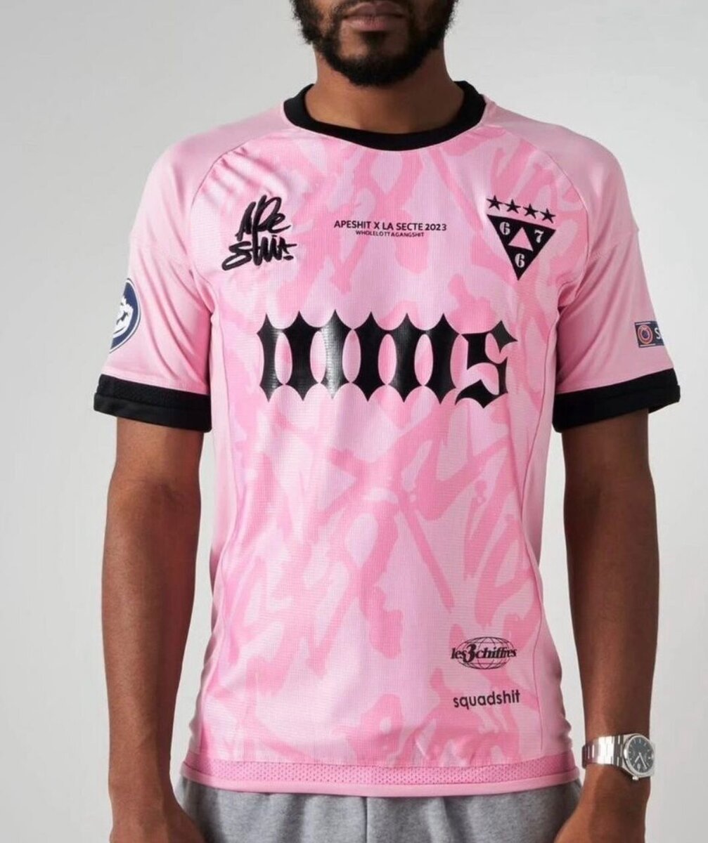 Maillot de football rose avec imprimés modernes, conçu en tissu respirant pour un confort optimal. Parfait pour les sportifs et les fans. Idéal pour les entraînements ou les matchs décontractés.