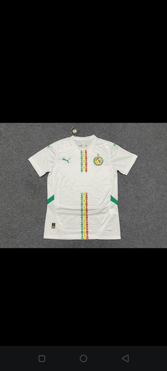Maillot de football officiel du Sénégal, idéal pour les supporters passionnés. Fabrication de qualité avec motifs aux couleurs nationales. Disponible en différentes tailles pour hommes. Portez-le au stade ou lors de vos matchs amicaux.
