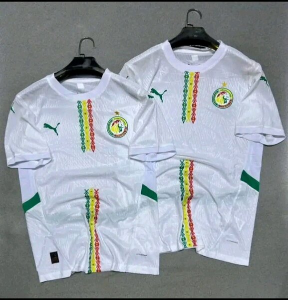 Maillot officiel du Sénégal pour les passionnés de football. Fabriqué par Puma, offrant confort et style. Affichez fièrement les couleurs de votre équipe lors des matchs ou à l'entraînement. Design unique et respirant, parfait pour les supporters.