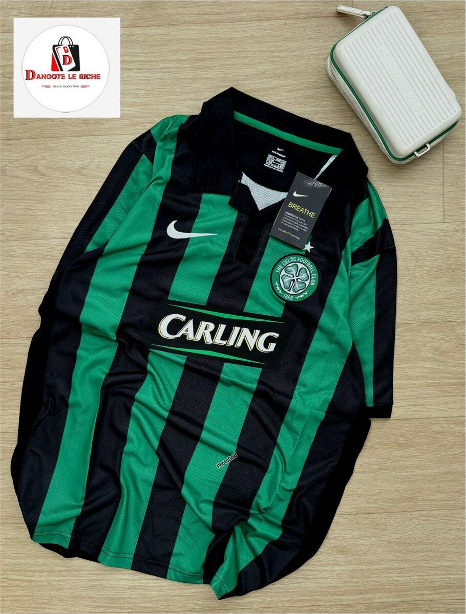 Maillot de football vert et noir avec logo brodé, idéal pour les fans de sport. Tissu respirant et confortable, parfait pour les matchs ou les entraînements.