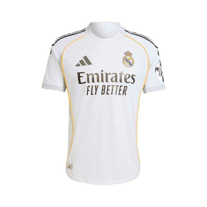 Découvrez le maillot de football Real Madrid, conçu pour les fans passionnés. Fabriqué avec des matériaux de haute qualité pour un confort optimal, il arbore le célèbre logo de l'équipe et des sponsors. Idéal pour supporter votre équipe favorite que ce soit dans le stade ou dans votre salon. Portez fièrement les couleurs emblématiques de Real Madrid.