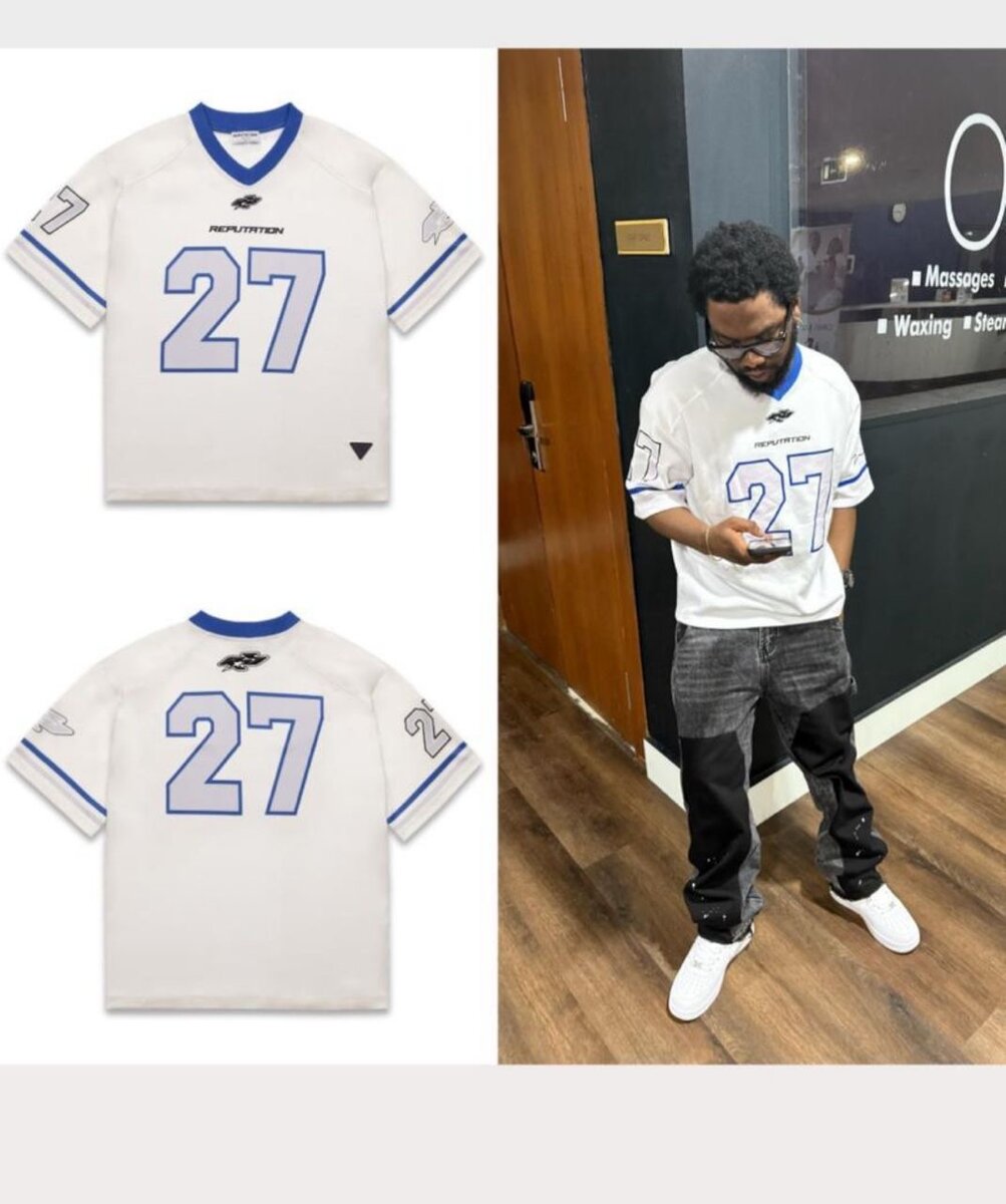 Maillot de sport blanc avec le numéro 27, idéal pour les amateurs de mode et de sport. Confortable et stylé pour un look décontracté.