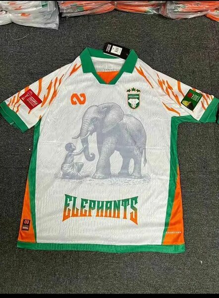 Maillot de football aux couleurs éclatantes avec motif d'éléphant emblématique. Parfait pour les fans, ce maillot léger et respirant offre confort et style. Idéal pour soutenir votre équipe favorite lors des matchs et événements sportifs.