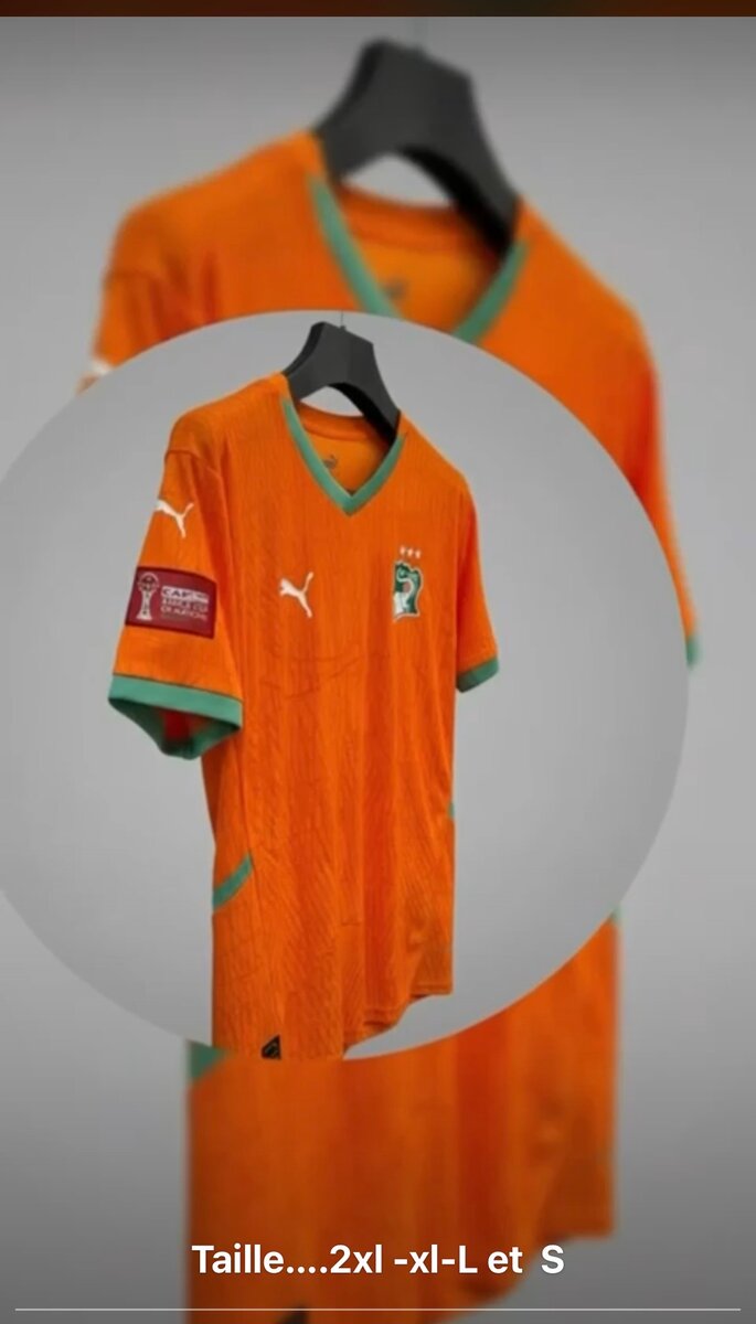 Maillot de football Côte d'Ivoire authentique, disponible en tailles variées, parfait pour les fans supportant leur équipe. Fabriqué avec des matériaux de qualité pour un confort optimal.