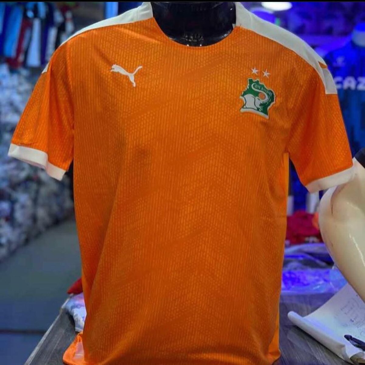 Découvrez le maillot officiel de l'équipe de football de Côte d'Ivoire, arborant fièrement les couleurs nationales. Fabriqué avec des matériaux de haute qualité pour assurer confort et performance sur le terrain. Parfait pour les supporters passionnés et les amateurs de football. Taille adulte disponible.
