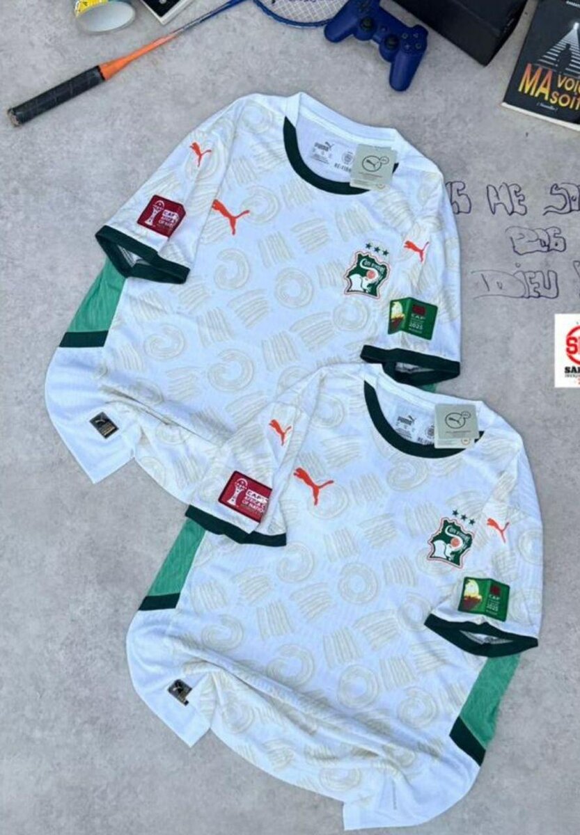 Maillot de football de l'équipe nationale de Côte d'Ivoire, design officiel avec écusson. Idéal pour les supporters passionnés de football, parfait pour les matchs ou le sport quotidien. Conception en tissu respirant, offrant confort et style. Représentez fièrement votre équipe!