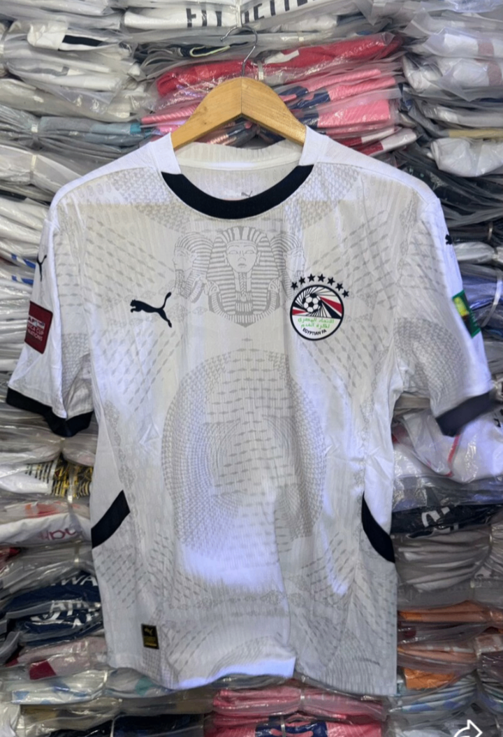 Maillot de football officiel de l'équipe nationale d'Égypte. Design moderne avec logo d'équipe, idéal pour les fans et les collectionneurs. Parfait pour soutenir votre équipe lors des matchs ou pour un look sportif décontracté. Disponible en tailles variées.