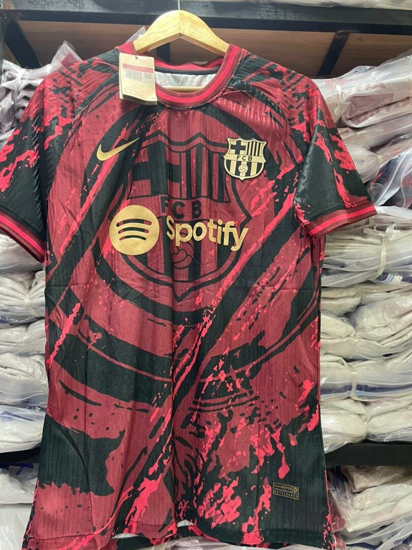 Découvrez le maillot FC Barcelone Édition Spéciale, parfait pour les fans passionnés. Design audacieux et couleurs vibrantes, idéal pour le stade ou la collection. Affichez votre soutien avec style !